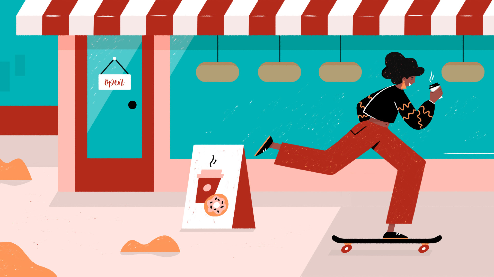 In this project for School of Motion’s course “Illustration for Motion” we had to design styleframes for "Normal Coffee", a fictional boutique coffee & donut shop. They want to make a 15 second ad campaign in 16:9 format with an animated character.